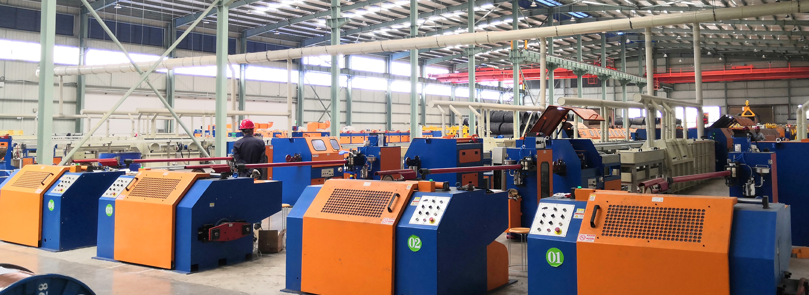點(diǎn)擊查看更多產(chǎn)品胎圈鋼絲拉絲設(shè)備,集合前處理、拉絲機(jī)、感應(yīng)回火裝、置鍍銅裝置、收線(xiàn)一體化生產(chǎn)線(xiàn)。設(shè)計(jì)速度15米/秒,整線(xiàn)長(zhǎng)113米。拉絲機(jī)部分仍采用伺服直驅(qū)式,電機(jī)直驅(qū)卷筒。取消減速機(jī)、皮帶輪、剎車(chē)系統(tǒng),設(shè)備具有節(jié)能,高效,低維護(hù)特點(diǎn)。機(jī)身對(duì)稱(chēng)設(shè)計(jì),電控與設(shè)備融為一體,致力于節(jié)能20%,占地50%,維修40%,提效20%的目標(biāo)。