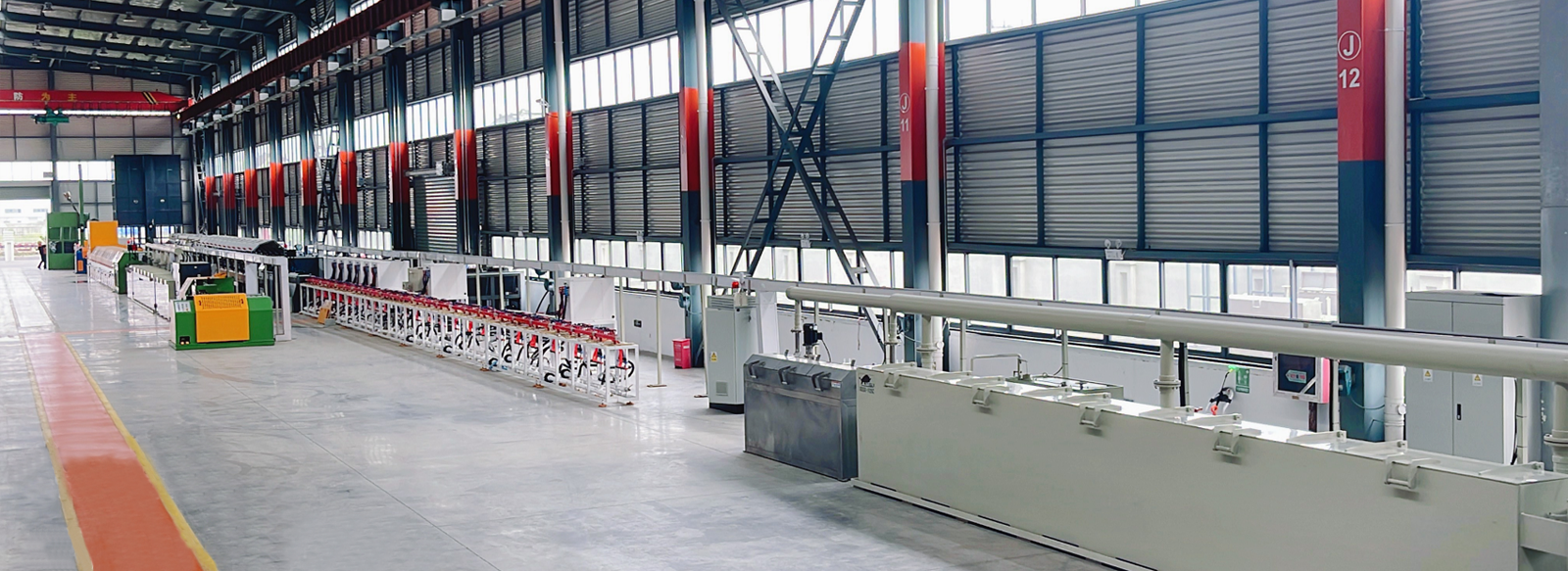 點(diǎn)擊查看更多產(chǎn)品二氧化碳?xì)獗:附z拉絲設(shè)備,集合前處理、拉絲機(jī)、鍍銅裝置、收線(xiàn)一體化生產(chǎn)線(xiàn)。設(shè)計(jì)速度30米/秒,整線(xiàn)長(zhǎng)70米。拉絲機(jī)部分仍采用伺服直驅(qū)式,電機(jī)直驅(qū)卷筒。取消減速機(jī)、皮帶輪、剎車(chē)系統(tǒng),設(shè)備具有節(jié)能,高效,低維護(hù)特點(diǎn)。機(jī)身對(duì)稱(chēng)設(shè)計(jì),電控與設(shè)備融為一體,致力于節(jié)能20%, 占地50%,維修40%,提效20%的目標(biāo)。