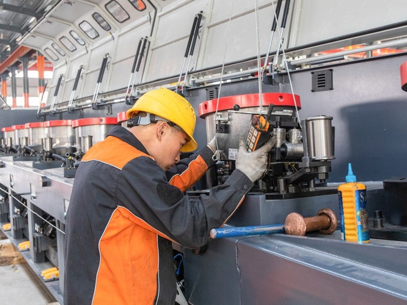產(chǎn)品簡介:伺服直驅(qū)式輻條鋼絲拉絲裝備,電機(jī)直驅(qū)卷筒。取消減速機(jī)、皮帶輪、剎車系統(tǒng),設(shè)備具有節(jié)能,高效,低維護(hù)特點。機(jī)身對稱設(shè)計,電控與設(shè)備融為一體,致力于節(jié)能20%, 占地50%,維修40%,提效20%的目標(biāo)。