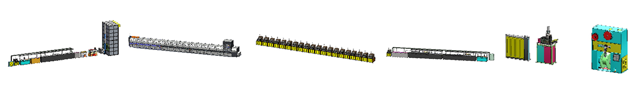 集合前處理、拉絲機(jī)、感應(yīng)回火裝、置鍍銅裝置、收線一體化生產(chǎn)線。設(shè)計(jì)速度15米/秒,整線長113米。拉絲機(jī)部分仍采用伺服直驅(qū)式,電機(jī)直驅(qū)卷筒。取消減速機(jī)、皮帶輪、剎車系統(tǒng),設(shè)備具有節(jié)能,高效,低維護(hù)特點(diǎn)。機(jī)身對(duì)稱設(shè)計(jì),電控與設(shè)備融為一體,致力于節(jié)能20%,占地50%,維修40%,提效20%的目標(biāo)。