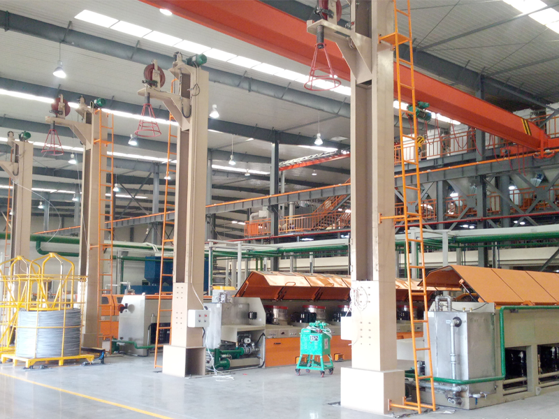 焊條拉拔設(shè)備,集合前處理、拉絲機、鍍銅裝置、收線一體化生產(chǎn)線。設(shè)計速度30米/秒,整線長70米。拉絲機部分仍采用伺服直驅(qū)式,電機直驅(qū)卷筒。取消減速機、皮帶輪、剎車系統(tǒng),設(shè)備具有節(jié)能,高效,低維護(hù)特點。機身對稱設(shè)計,電控與設(shè)備融為一體,致力于節(jié)能20%, 占地50%,維修40%,提效20%的目標(biāo)。